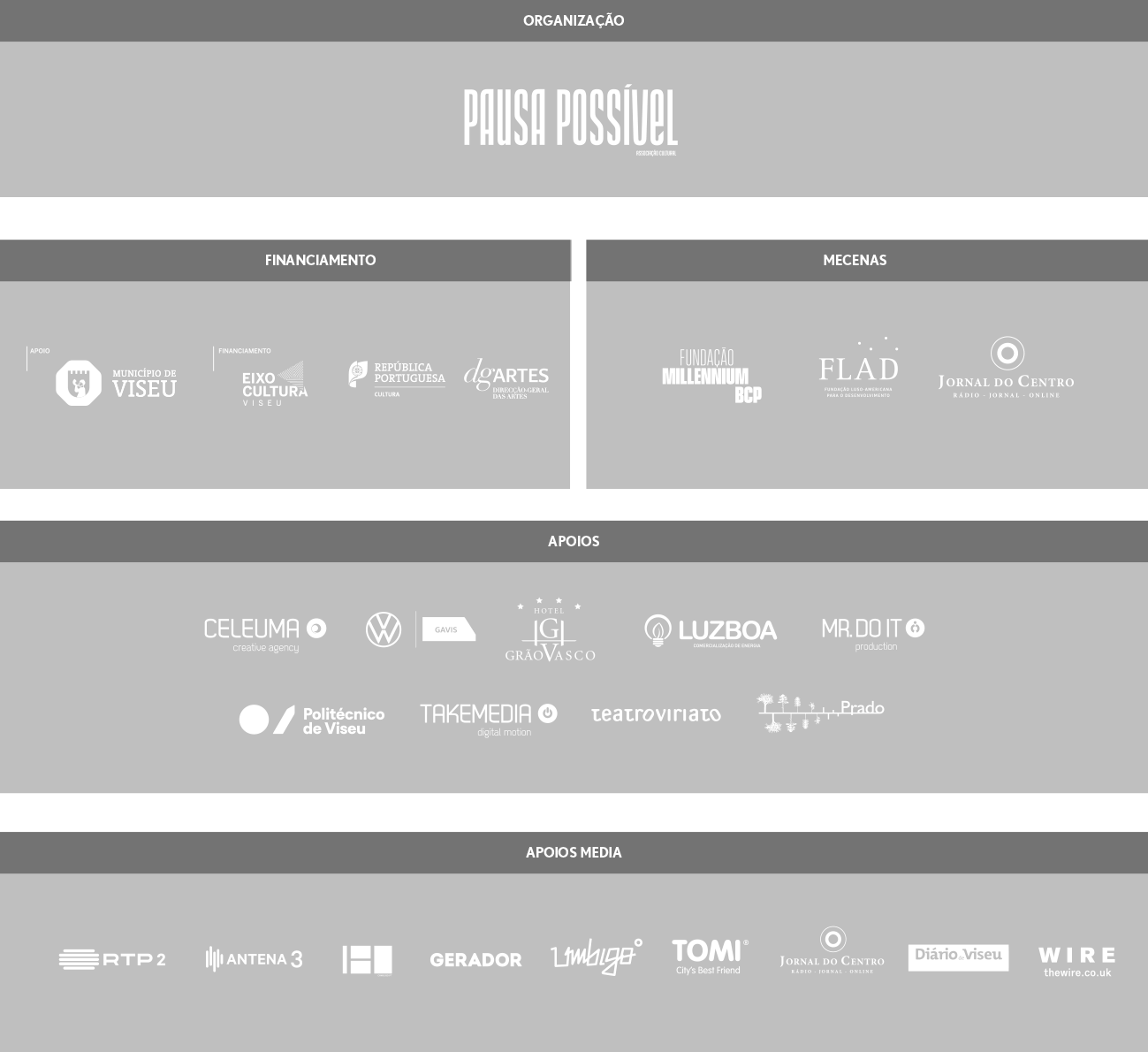 Continuamos a apelar ao mecenato para todos os projectos culturais, especialmente para aquelas entidades que, quando possível, apoiam a gratuidade das suas realizações.